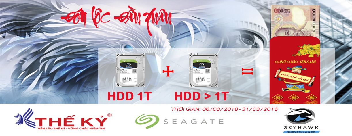 - Khách hàng nhận được ngay phong bao lì xì may mắn trị giá 50.000đ khi mua 01 ổ cứng 1TB Skyhawk và 01 ổ cứng bất kì lớn hơn 1T