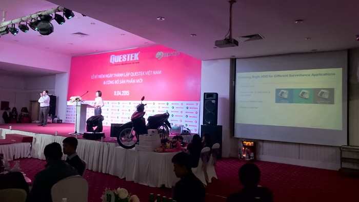 Mr Hà Duy Nghiêm - Tổng Giám Đốc QUESTEK VIỆT NAM, Mr Sean Wong - Ms Uyên đến từ hãng SEAGATE lần lượt chia sẻ về xu hướng thiết bị giám sát, tương lai 4K và HDD SEAGATE chuyên dụng