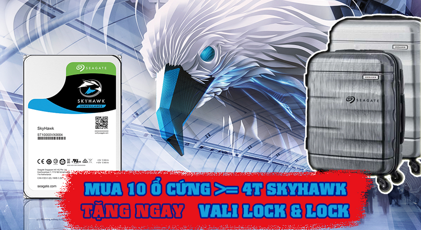Tất cả khách hàng mua hàng của Công ty sẽ được khuyến mại 01 Vali Lock&Lock cao cấp khi mua 10 sản phẩm ổ cứng Seagate Skyhawk có dung lượng từ 4-Tb trở lên.
