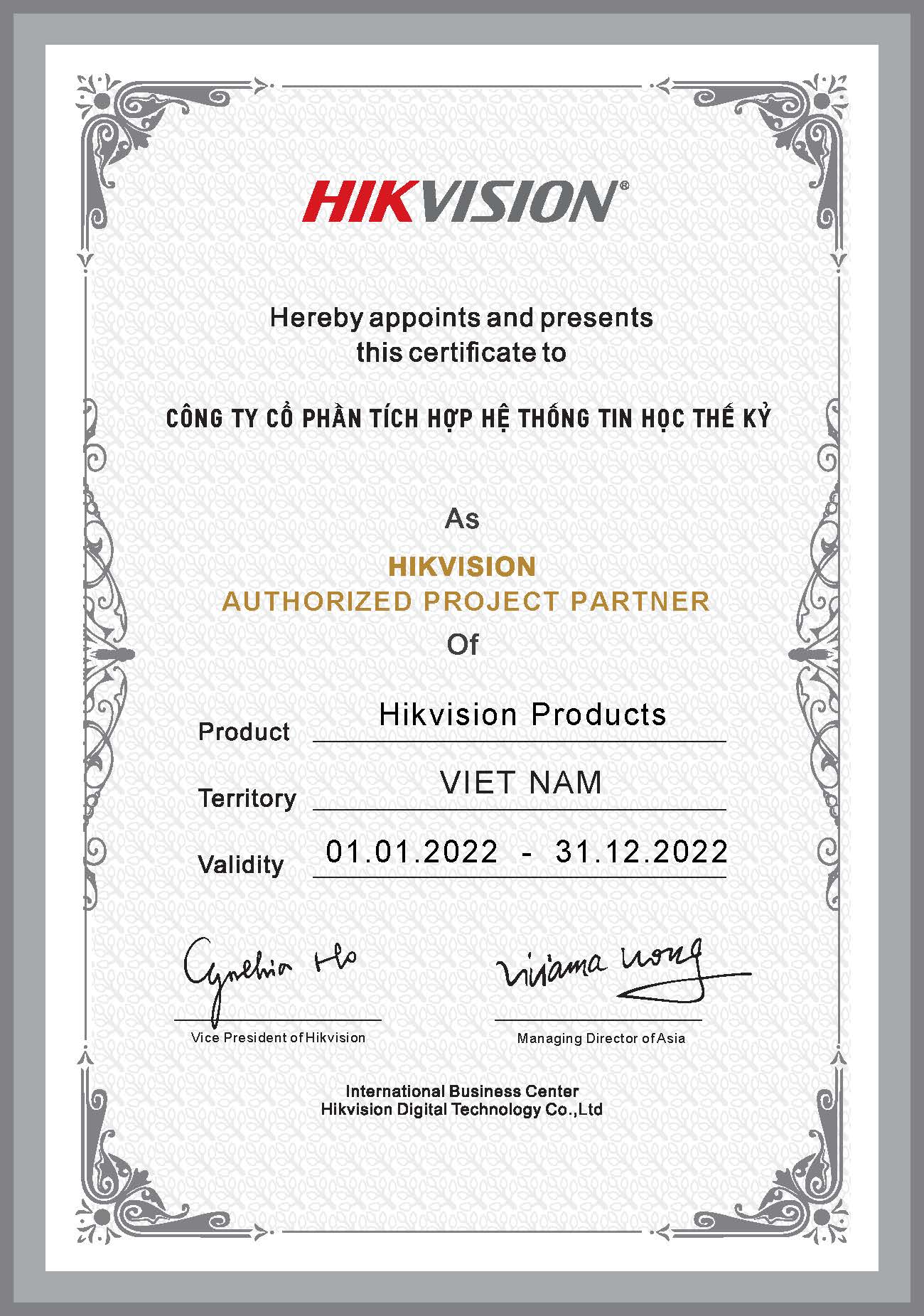 Công ty cổ phần Tích hợp hệ thống tin học Thế Kỷ, Đơn vị với hơn 12 năm kinh nghiệm làm việc trong lĩnh vực CCTV, là đại lý hàng đầu của Hikvision, với những thành tích xuất sắc trong kinh doanh đặc biệt là trong mảng dự án, Thế Kỷ vinh dự được lựa chọn là "PROJECT PARTNER" của Hikvision.